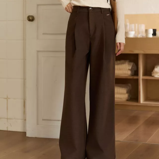 Brown High-Waist Wide-Leg Pants for Women Autumn Winter