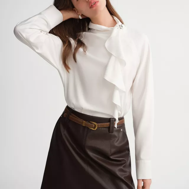 Bring fresh elegance into your winter wardrobe with this chic draped blouse. Pair it with tailored trousers, jeans, or a sleek skirt—its versatility ensures endless outfit possibilities. Add this standout top to your collection today and enjoy a perfect blend of comfort, style, and modern flair.