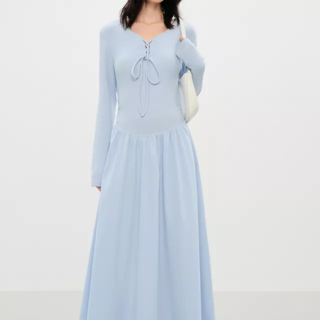 Featuring a refined V-neckline and a charming bow detail, this long-sleeved dress brings effortless femininity to your wardrobe. The full-length sleeves provide warmth during cooler months, making it perfect for outdoor events, holiday dinners, cozy evenings out, or stylish office days. Its pullover design ensures easy wear, while the stretchy knit construction offers a comfortable, flexible fit all day long. Whether paired with heels for a dressy look or boots for a chic casual vibe, this dress adapts to your style with ease.