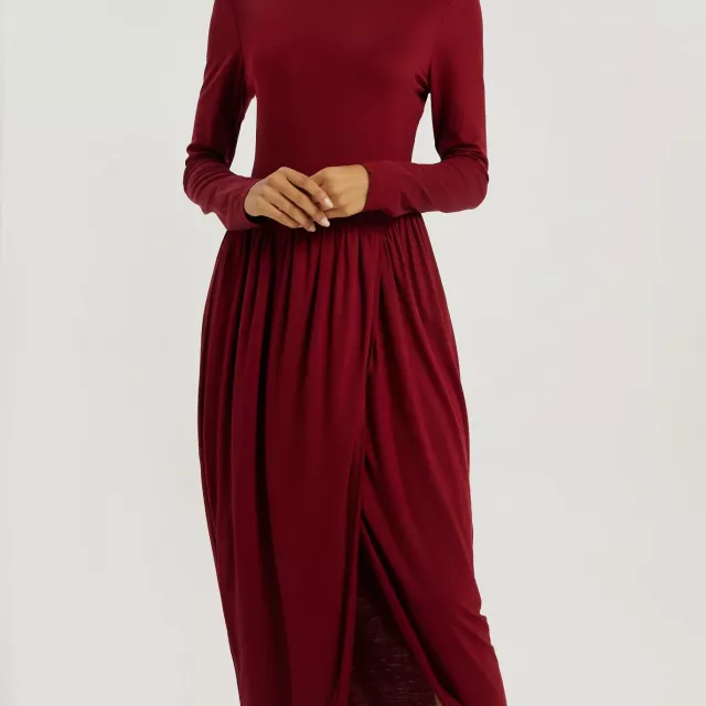 Elegant Wine Red Turtleneck Bodycon Midi Dress for Women