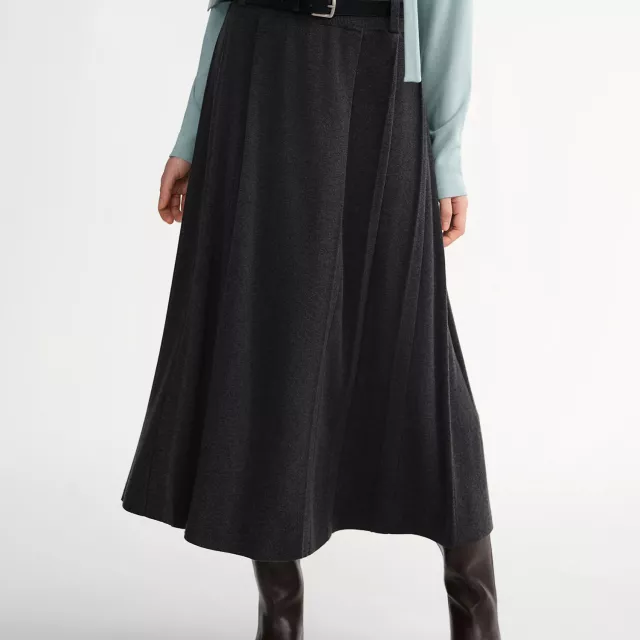 This skirt stands out because of its structured yet soft knit that holds its shape without feeling stiff. The pleated design adds texture and movement, while the natural high waist enhances your silhouette for a sleek, slimming look. Its ankle-length cut offers coverage and elegance, ideal for chilly days without sacrificing style.
