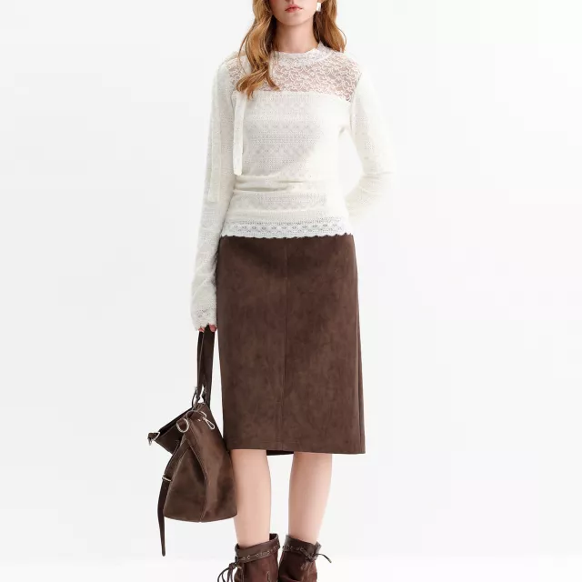 This skirt features an empire waistline that enhances your figure while offering a comfortable, regular fit. Its broadcloth fabric and tatting weave technique give it a durable yet luxurious texture—perfect for the cooler months of Autumn and Winter. The non-stretch design keeps the skirt crisp and elegant throughout the day, making it ideal for long hours at the office or important professional occasions where polished presentation matters. With a warm coffee-brown vintage tone, it pairs beautifully with blouses, sweaters, and tailored jackets for a seamless seasonal wardrobe.