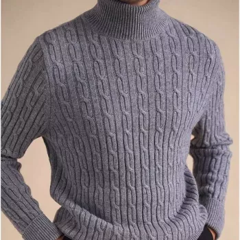 Men’s High Collar Cable Knit Turtleneck Sweater for Winter