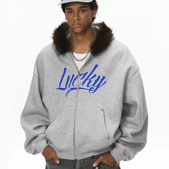 This hoodie jacket features full-length sleeves, a solid color design, and a warm knit construction—perfect for autumn and winter. Its embroidered detailing adds character, while the hood provides extra protection for breezy days. With a regular length and a zipper closure, it’s easy to throw on and versatile enough to fit effortlessly into your cold-weather outfits. Available in classic light gray and black, it pairs easily with jeans, joggers, or cargo pants for a clean streetwear aesthetic.