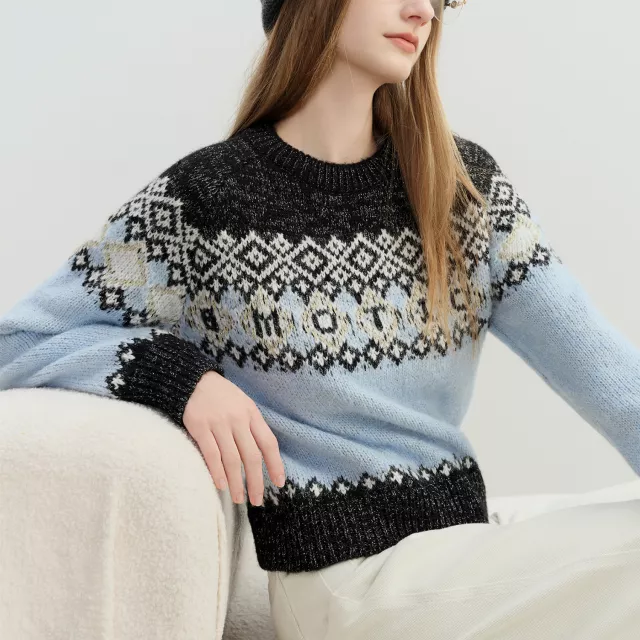 The subtle Fair Isle argyle pattern gives it a cozy, European feel that looks just as good with jeans as it does with skirts or tailored pants. The crew neckline keeps the look classic and easy to style with scarves, coats, or blazers.