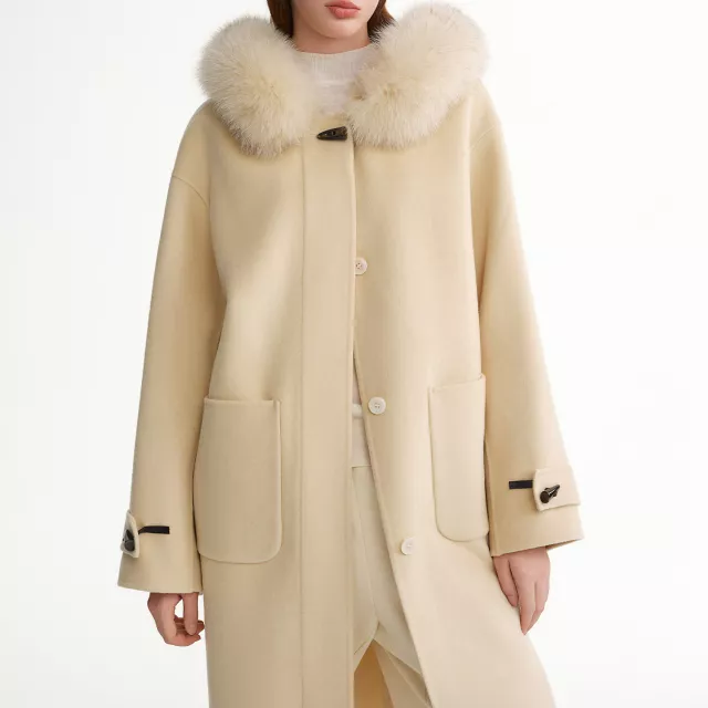 This coat stands out because of its premium double-faced wool construction. It feels smooth on the outside and cozy inside, offering natural insulation without heaviness. The real fox fur collar adds a touch of luxury and helps protect your neck from cold winds. Its wide-waist design is especially flattering for plus-size figures, giving you a balanced and confident look.