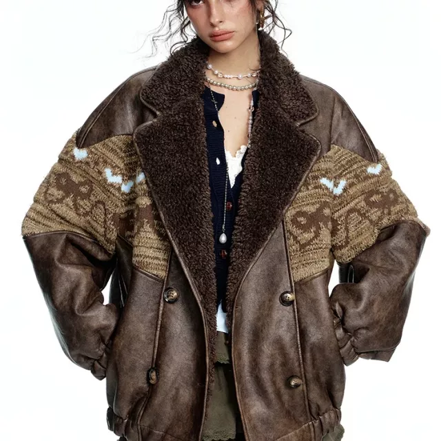 Unlike typical winter outerwear, this piece stands out with its retro Maillard-inspired color palette and intricate knitted bow jacquard stitching. The mix of textures—sleek PU, plush accents, and decorative knitwork—creates a truly eye-catching combination. It’s ideal for daily wear, seasonal outings, or any time you want an effortlessly stylish layer that feels warm without being bulky. Whether you’re out for a walk, meeting friends, or styling a streetwear-inspired outfit, this jacket elevates your look instantly.