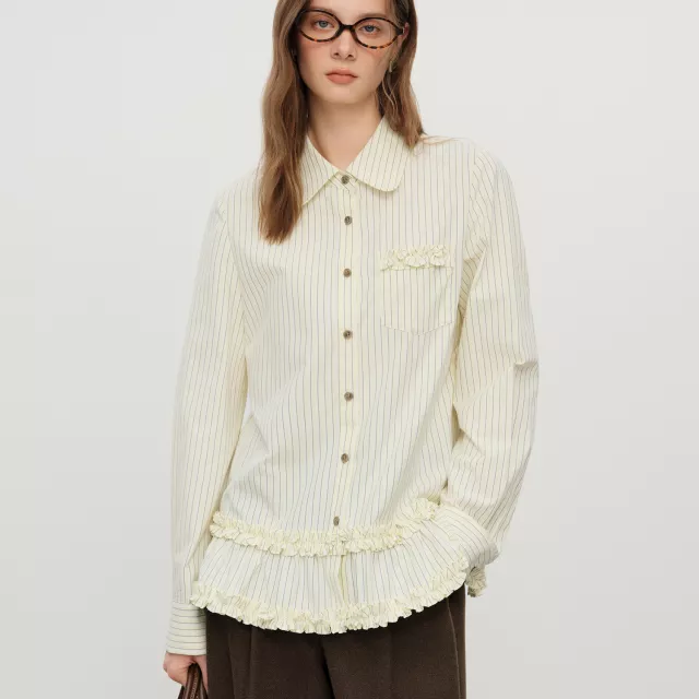 Striped Ruffle Long-Sleeve Lapel Shirt for Women