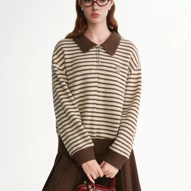 Its loose fit and long sleeves give you room to layer while maintaining a casual, laid-back silhouette. The turn-down collar adds a refined touch, and the contrast striped pattern brings a subtle retro vibe, giving you a sweet and age-reducing Korean-style look. Whether you’re heading to class, meeting friends for coffee, or enjoying a cozy day at home, this sweater is versatile enough to match any casual setting.