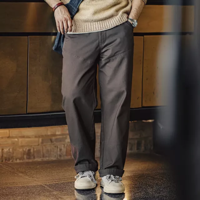 Vintage Straight-Leg Cotton Workwear Pants for Men