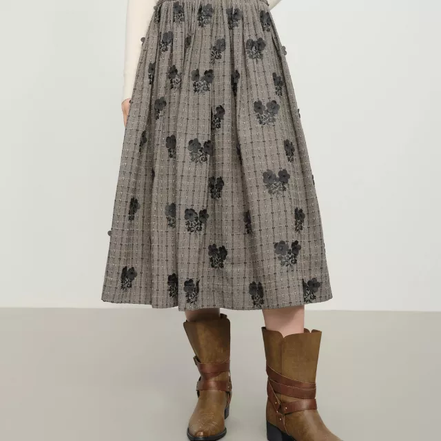 Step into the colder seasons with confidence and charm in this beautifully crafted winter A-line skirt. Designed with a flattering empire waist and a soft mid-calf length, it brings a touch of vintage romance to modern dressing. The delicate 3D floral embroidery gives it an elegant, feminine finish that instantly elevates simple tops and coats. Whether you’re heading to the office or meeting friends for coffee, this skirt adds effortless style without trying too hard.