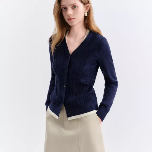 Wrap yourself in comfort and style with this elegant V-neck cable-knit cardigan, designed to give you the trendy two-piece look without the extra bulk. Crafted with soft, medium-stretch knit fabric, it offers a naturally slim fit that flatters your silhouette while keeping you warm throughout chilly autumn and winter days. Its cozy texture, thick construction, and timeless geometric knit pattern make it a must-have for anyone who loves effortless fashion that looks polished with minimal effort.