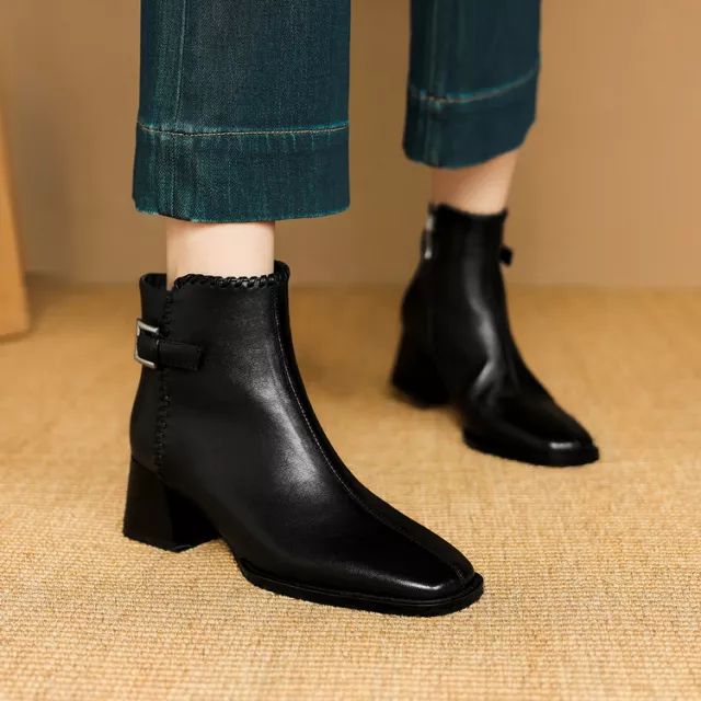 These boots are more than just a winter essential – they are a statement piece. The rich genuine leather not only gives them a timeless look but also ensures long-lasting durability. The cozy fleece lining will keep your feet warm and toasty, while the sturdy TPR sole provides slip-resistant traction, perfect for winter conditions. The square toe design adds a unique touch, while the chunky heel gives you just the right amount of height without sacrificing comfort. Ideal for daily wear, these boots will quickly become your go-to for winter fashion.