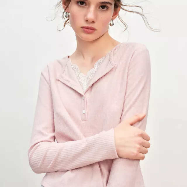 The lightweight fabric provides just the right amount of warmth, making it a versatile addition to your winter wardrobe. The textured lace trim adds a touch of femininity and elegance, while the slim, contoured silhouette gently hugs your curves without feeling restrictive. The V-neckline gives it a modern twist, enhancing its chic appeal while maintaining practicality for everyday wear.