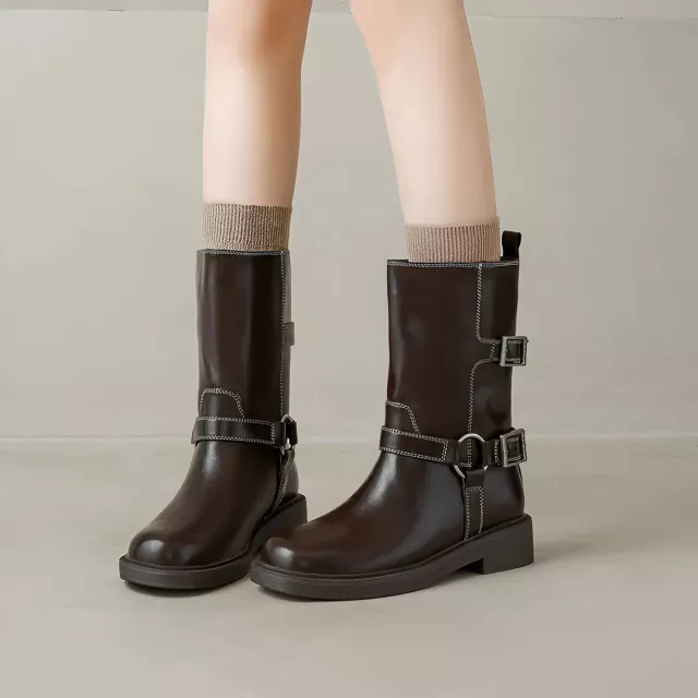 Get ready for the colder months with these chic Winter Women’s Split Leather Mid-Calf Riding Boots. Designed for both style and practicality, these boots are the perfect addition to your wardrobe for autumn and winter. With their timeless design and sleek metallic details, they’ll complement any outfit, whether you’re riding, walking, or simply enjoying a cozy day out. The mid-calf length provides the right amount of coverage, while the round toe and chunky heel offer comfort and support for all-day wear.