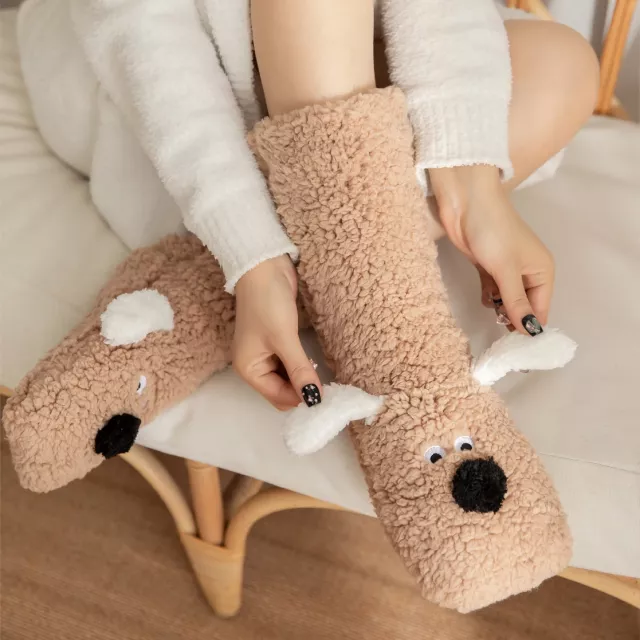 What truly sets these socks apart is the perfect balance of warmth, softness, and safety. Made from a plush cotton and polyester blend, they feel like a gentle hug around your feet. The thick, fluffy knit helps trap heat, making them ideal for cold weather and chilly floors. The 3D cartoon dog detail adds personality, while the non-slip grip on the soles gives you confidence when walking on tile, wood, or laminate surfaces.