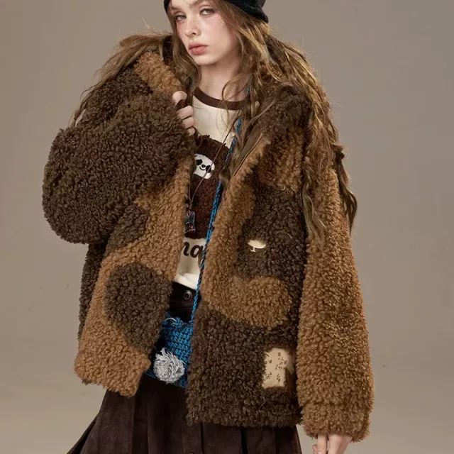 Unlike ordinary winter coats, this piece combines structured tailoring with soft, plush textures. The color block design adds a modern touch without being loud, while the thick woven fabric keeps heat in even on freezing mornings. The hooded collar offers added protection from wind and light snow, keeping you comfortable without needing extra layers.