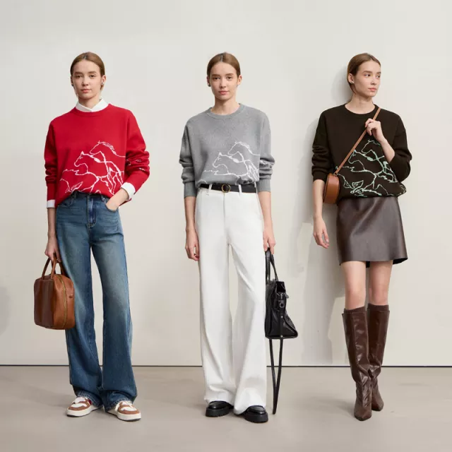 The subtle animal jacquard pattern adds character without being loud, making it perfect for office settings, casual meetings, or laid-back weekends. The classic O-neck design creates a clean neckline that layers beautifully under coats, blazers, or scarves.