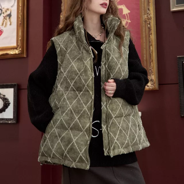Add this retro diamond quilted puffer vest to your collection and enjoy warmth, comfort, and timeless style all season long. Upgrade your everyday look with a piece you’ll reach for again and again. Don’t wait too long — your new favorite winter layer is just a click away.