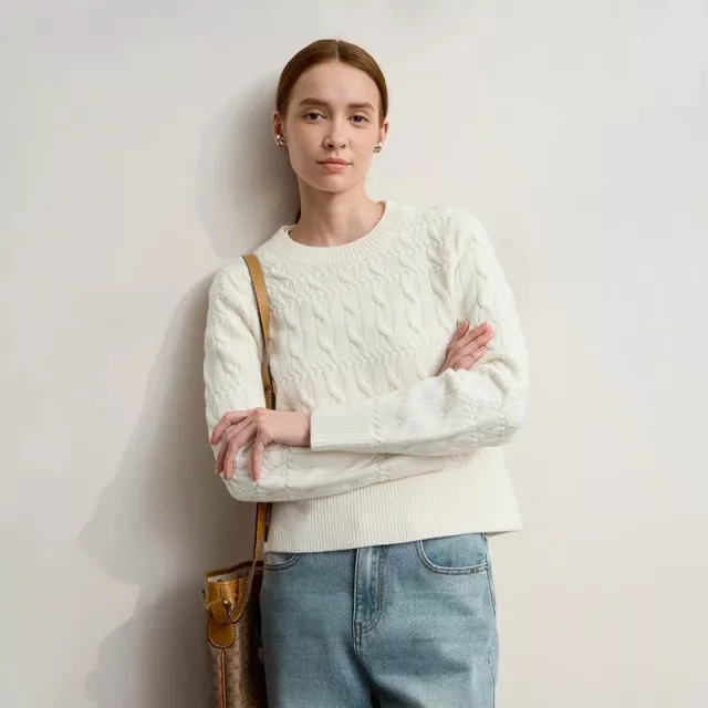 This sweater is made from a carefully balanced blend of polyester, acrylic, and nylon. The result is a soft feel with just the right amount of warmth and slight stretch for everyday comfort. The short length gives it a modern edge and makes it perfect for pairing with high-waisted jeans, skirts, or trousers.