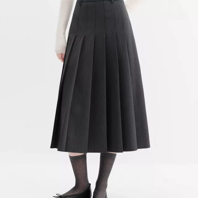 Bring classic charm into your everyday wardrobe with this retro-inspired pleated A-line midi skirt. Designed to flatter and flow, it blends preppy elegance with a youthful edge, making it perfect for office wear and casual outings. The structured pleats create a graceful flare, while the A-line cut skims your shape without clinging. Finished with a practical front pocket, this skirt is as functional as it is stylish.