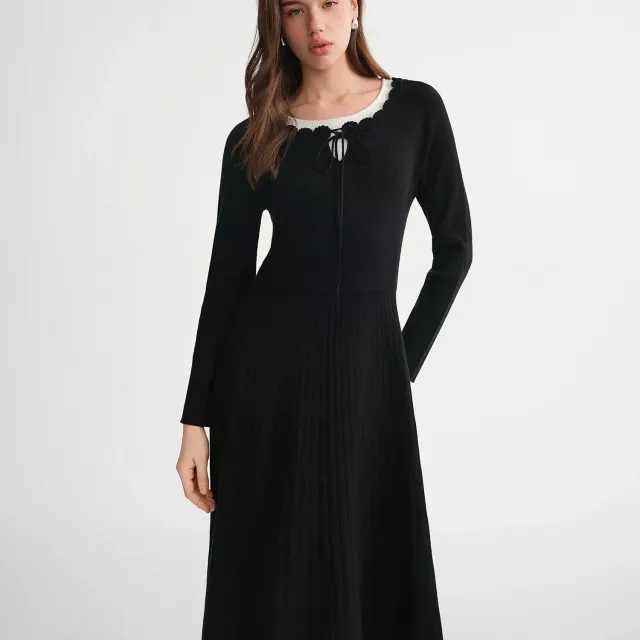 Step into effortless elegance with this Women’s Romantic Color Block Knit Two-Piece Dress. Designed for curvy women who want a blend of style and comfort, this mid-calf dress brings a fresh, modern twist to your wardrobe. Its soft knitted fabric and natural waistline create a flattering silhouette that drapes beautifully, highlighting your curves in all the right ways. The mock two-piece design adds a chic, layered look without the hassle, while the bow detail at the neckline brings a touch of feminine charm.