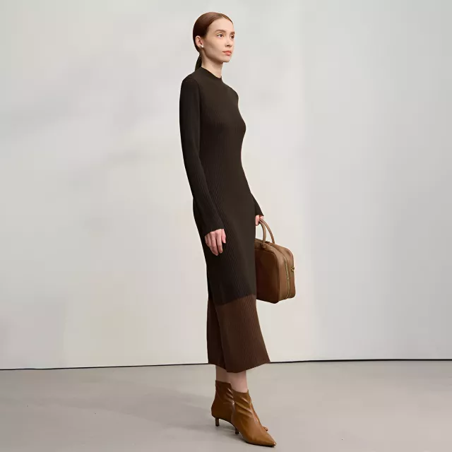 Step into winter with confidence in this beautifully designed slim knit midi dress. Created for modern women who love comfort without sacrificing style, this piece blends soft knitted fabric with a flattering A-line silhouette. The semi-turtleneck adds a touch of sophistication while keeping you warm on chilly days. With its unique patchwork design and smooth texture, this dress brings effortless elegance to your seasonal wardrobe.